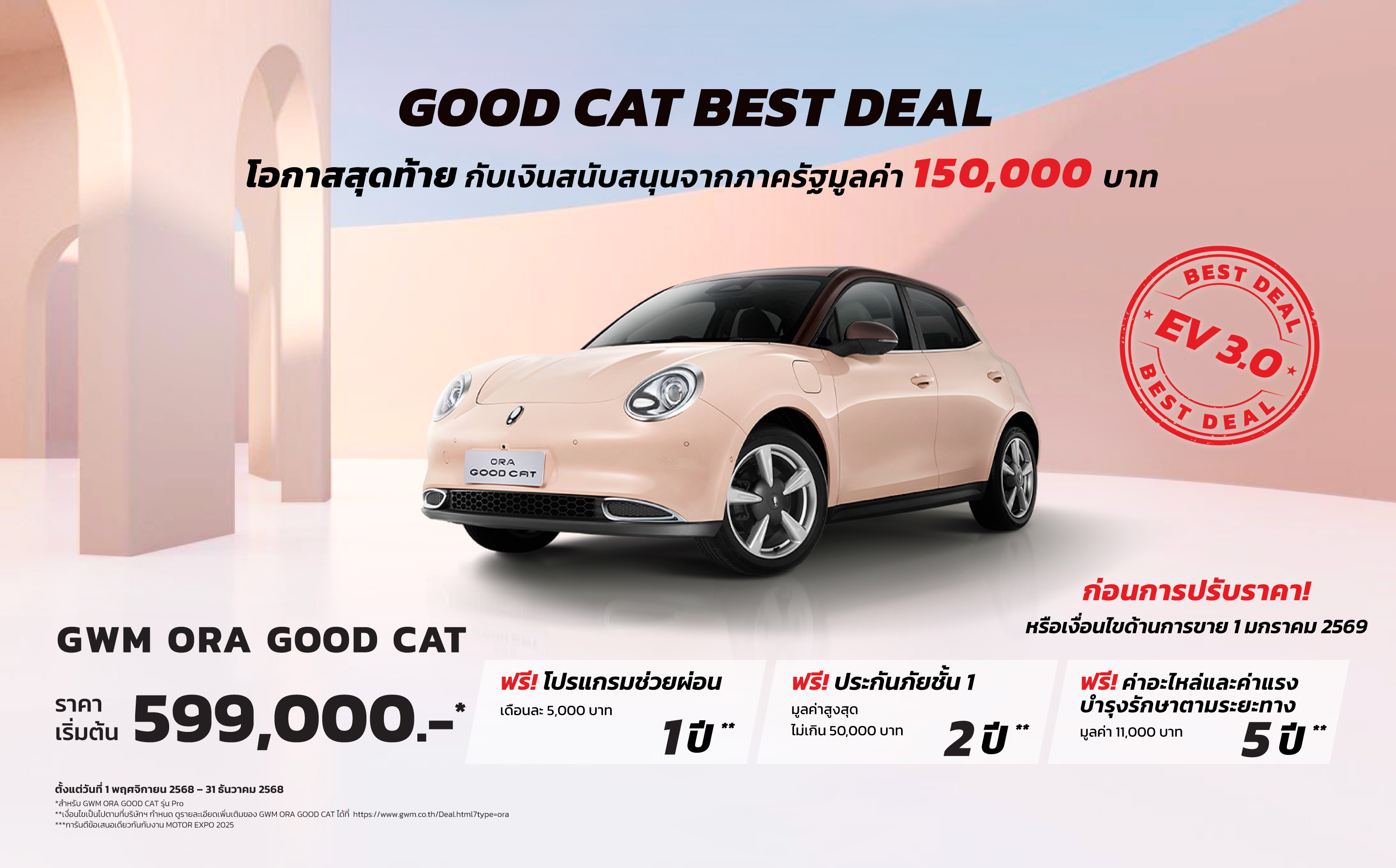 The Special Offer of November 2025 for purchasing the GWM New ORA Good Cat, maximum value at 383,000 Baht for PRO model and ULTRA model.